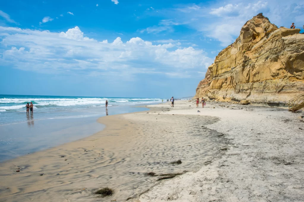 Stretching along Torrey Pines State Natural Reserve, this beach offers miles of unspoiled coastline. Visitors can sunbathe on the golden sands, surf the reliable waves or simply enjoy a leisurely walk while watching the sunset. The beach is backed by towering cliffs and the famous Torrey Pines, providing a stunning natural backdrop.